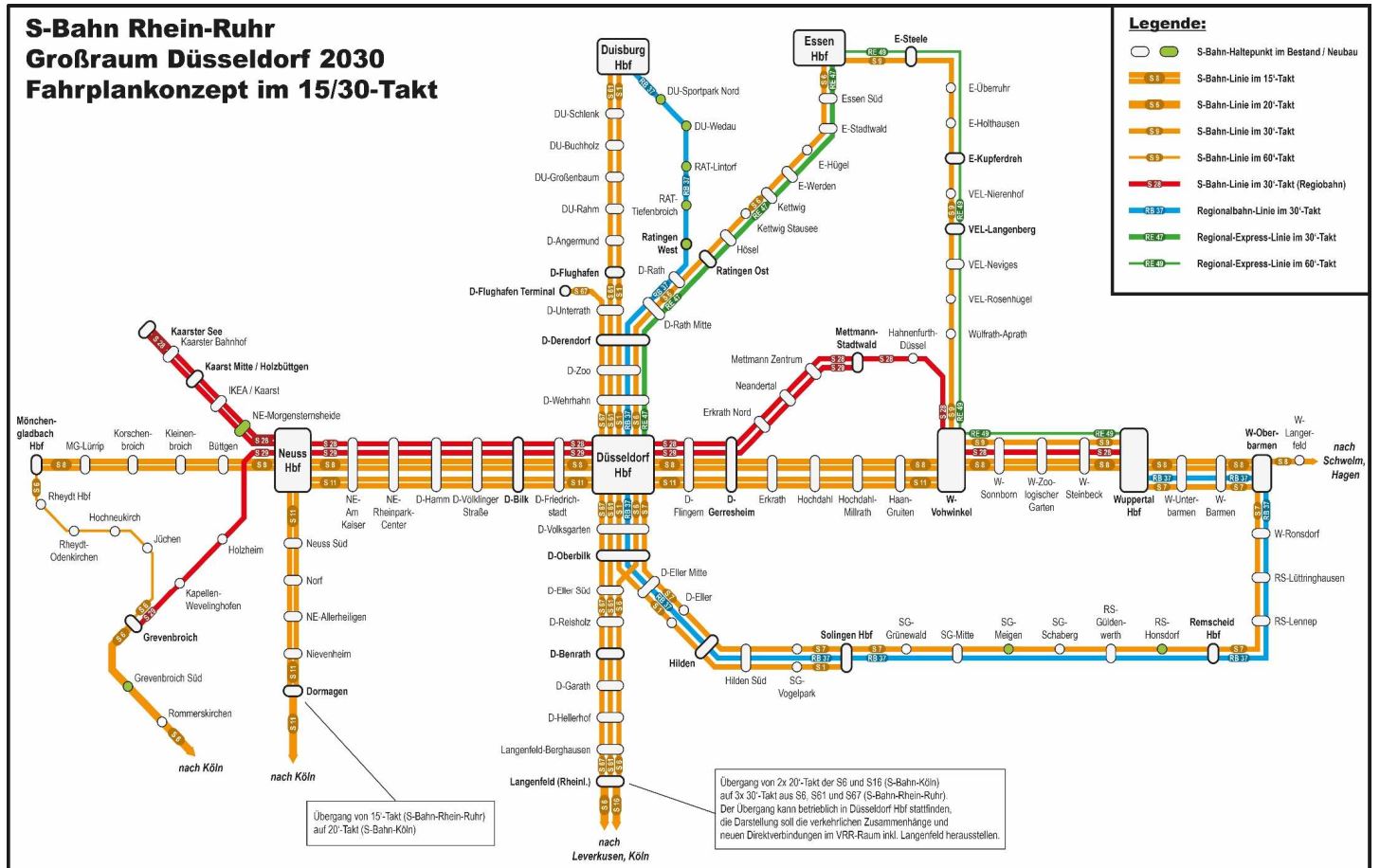 Der VRR überlegt, das S-Bahnnetz rund um Düsseldorf zu verbessern, statt 20-Minuten-Takt ein 15/30-Minuten-Takt,