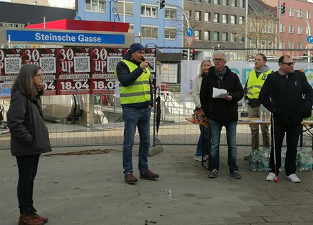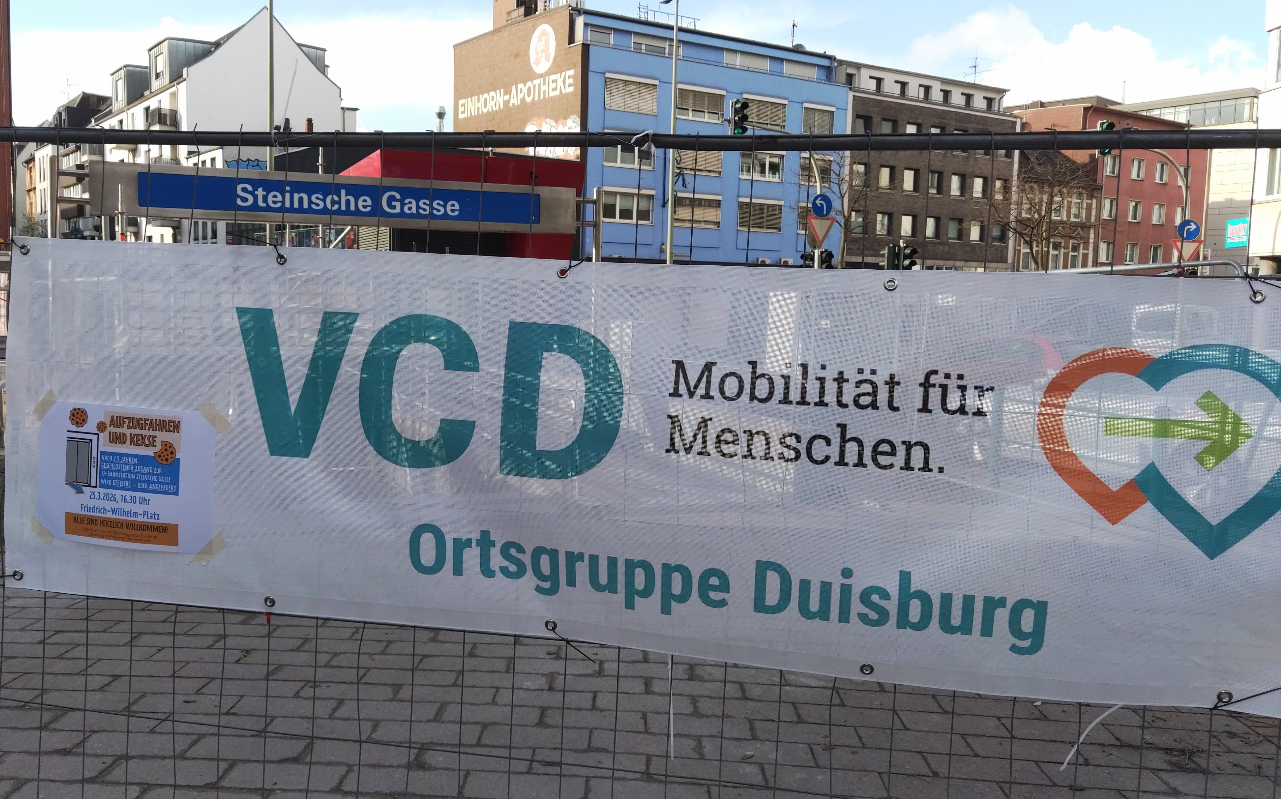 Am 25.3.26 haben wir eine weitere Party an der Baustelle Steinsche Gasse veranstaltet. Gemeinsam mit Duisburg in WALLung, dem Blindenverein und dem VDK freuen wir uns, dass hier in wenigen Tagen die Barrierefreiheit realisiert ist. Mit zwei Aufzügen und einem guten Blindenleitsystem kommen endlich alle Menschen problemlos in die U-Bahn.