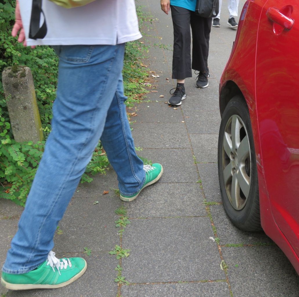 Wir als VCD führten dann einen ganz praktischen Workshop durch, einen Fußverkehrs- und Haltestellencheck in Neudorf Nord rund um den Sternbuschweg. Wir erlebten an vielen Stellen viel zu wenig Platz für den Fußverkehr, viel zu viele breite Autos nutzen den Gehweg als Parkplatz. An Haltestellen und Kreuzungen fehlen abgesenkte Bordsteine, an manchen Stellen ist der Gehweg überhaupt nicht befestigt und sehr gefährlich für den Fußverkehr. Wir werden die Ergebnisse im Nachhinein genau auswerten, im Anschluss werden wir verschiedene Adressaten mit den Problemen konfrontieren: Stadtverwaltung und Politik müssen endlich handeln. Ganz nebenbei hatten wir jede Menge Spaß und planen schon den nächsten Fußverkehrscheck, dieses Mal in einem anderen Stadtteil.