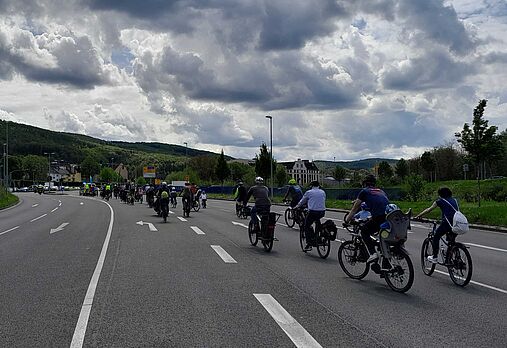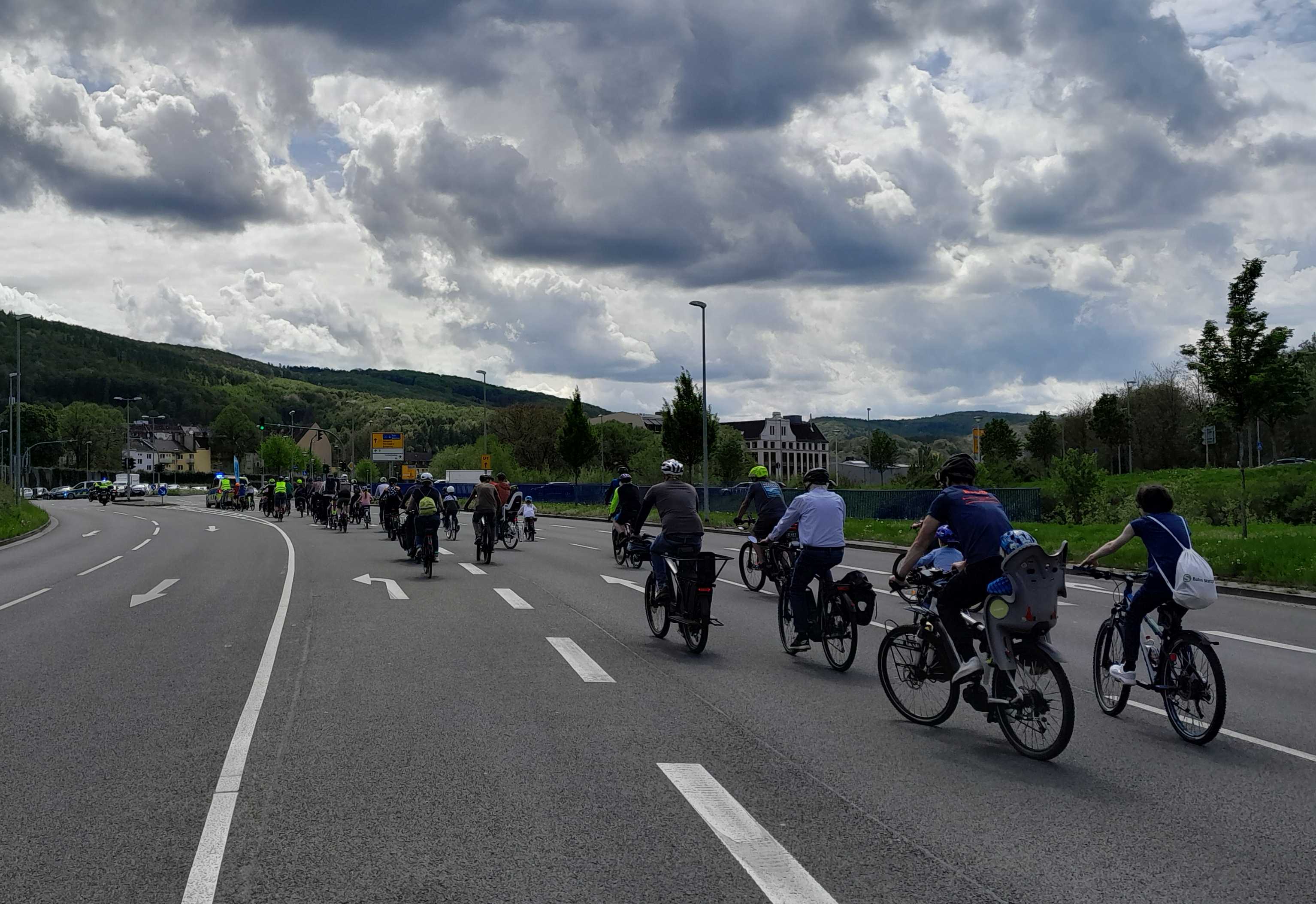 Eine kleine Delegation des ADFC Hagen schloss sich dem Zubringer aus Dortmund an, welcher über gut befahrbare Radwege wie z.B. die Wuppertaler Nordbahntrasse nach Wuppertal-Vohwinkel fuhr. Hier begann dann gegen 11:00 Uhr die durch die Polizei begleitete Demofahrt nach Düsseldorf.