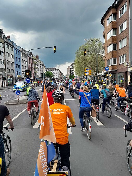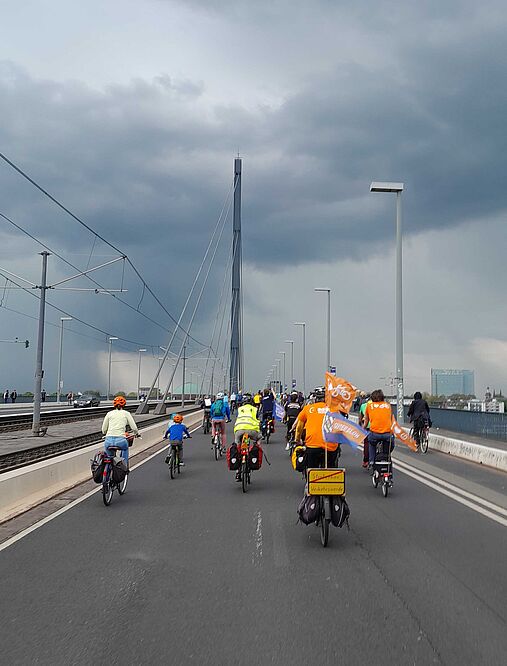 Am Sonntag, den 07.05.2023 lud der ADFC Nordrhein-Westfalen wieder zur jährlichen NRW-Sternfahrt nach Düsseldorf ein. Rund zweitausend Radler*innen aus allen Ecken des Bundeslandes fuhren in unzähligen Zubringern sternförmig auf Düsseldorf zu, und einige Fahrradfreund*innen kamen sogar aus dem fernen Hamburg angereist!