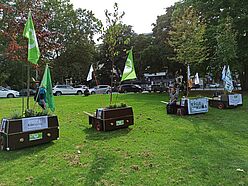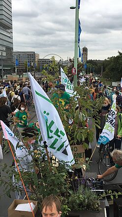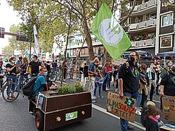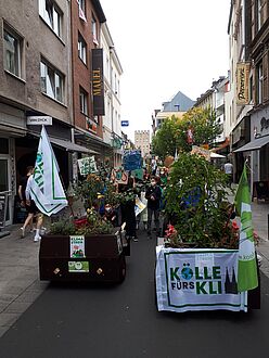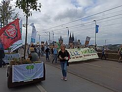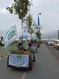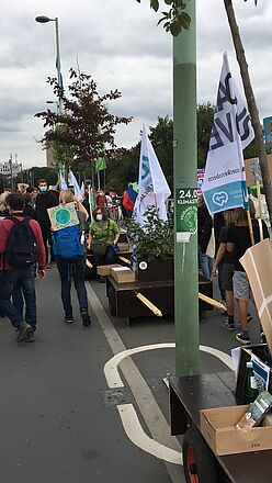 Am 24.09.2021 war der große Klimastreik von Fridays for Future und Students for Future – und wir waren mit dabei! Zusammen mit 14 Modulen der Wanderbaumallee, die von ihren verschiedenen Standorten den Weg in die Innenstadt auf sich genommen haben, sind wir bis zur Deutzer Brücke beim Demozug mitgelaufen. Mit vielen Fahnen und Plakaten bunt geschmückt fielen unsere demonstrierenden Bäume auf! Mehrmals wurden wir angesprochen, die Motive als Fotomotive genutzt und von anderen Demonstrierenden begeistert kommentiert :-)
