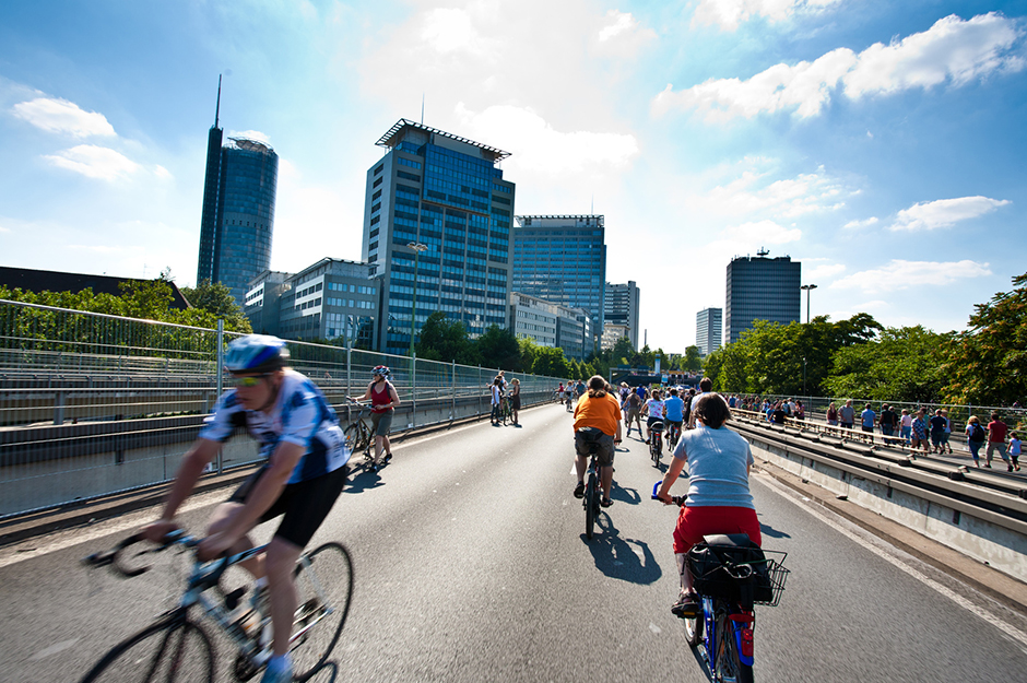 · Die geringere Bedeutung des motorisierten Individualverkehrs sollte für eine Neuaufteilung der Verkehrsflächen zugunsten der umweltfreundlichen Verkehrsmittel genutzt werden. Dazu gehört neben dem Rückbau von Fahrspuren auch der Abbau von Parkflächen zugunsten einer höheren Lebens- und Aufenthaltsqualität im öffentlichen Raum.