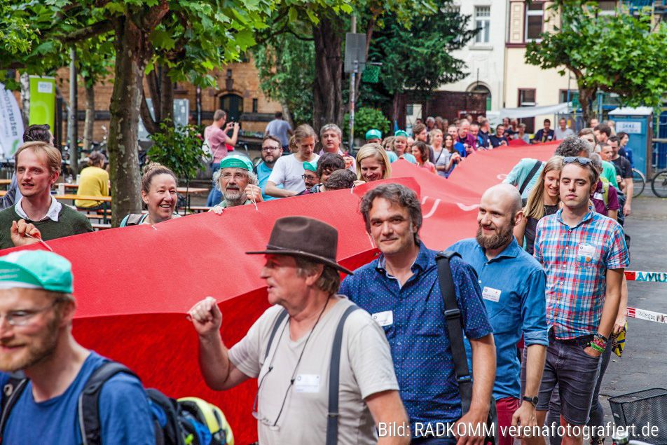 „Unsere Städte platzen aus allen Nähten, der Verkehr wird immer mehr, Stress und Parkplatzmangel gehören zur Tagesordnung. Wie die Statistik zeigt, fallen etwa 50 Prozent aller Autofahrten auf den kurzen Strecken an, also auf Fahrten bis fünf Kilometer. Genau diese Fahrten lassen sich problemlos mit dem Fahrrad zurücklegen. Kopenhagen und die Niederlande machen seit Jahren vor, wie es geht. Wenn sich die Menschen auf dem Fahrrad sicher fühlen und die Infrastruktur in Form von guten und komfortablen Radwegen vorhanden ist, kann das Fahrrad ein Teil der Lösung sein. Die Mobilitätswende ist längst überfällig. Mit der Volksinitiative Aufbruch Fahrrad soll ein Fahrradgesetz für Nordrhein-Westfalen in greifbare Nähe rücken. Ein bisher beispielloses Aktionsbündnis will den Akteuren in Politik und Verwaltung zeigen, wie viele Menschen in NRW sich eine Mobilitätswende wünschen", betonte Ute Symanski, Vorsitzende der RADKOMM e.V., die Idee beim Start der Volksinitiative.