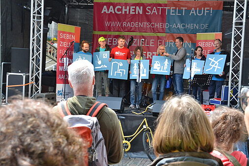 <link https: nrw.vcd.org der-vcd-in-nrw aachen-dueren news auftakt-zum-radentscheid external-link-new-window external link in new>Begleitet von einem Rahmenprogramm fand am 11. Mai der Startschuss für die Unterschriftensammlung satt. Nähere Informationen gibt es auf der <link https: radentscheid-aachen.de external-link-new-window external link in new>Homepage des Radentscheids. Hier wollen wir uns mit einigen Fotos begnügen, die einen Eindruck von der Auftaktveranstaltung vermitteln.